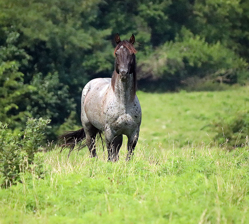Goose is a true blue roan. He is a kind soul. He loves attention and is a people minded horse.